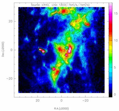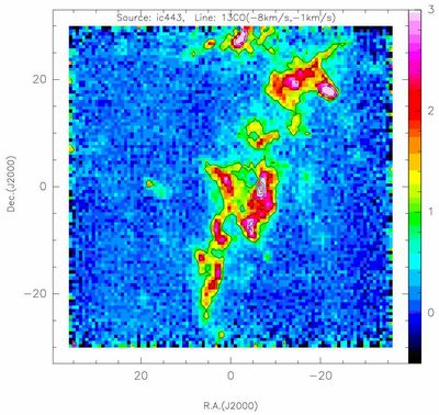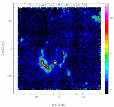 Figure 1: 12CO(1-0) image of SNR IC443 in the interval of -7km/s to -1km/s.