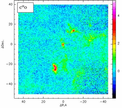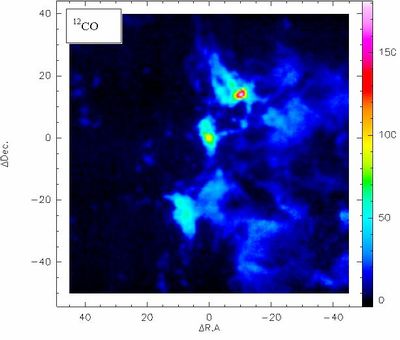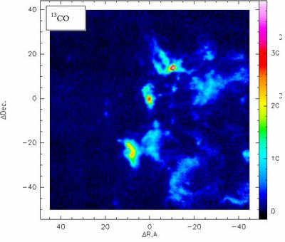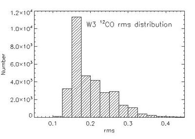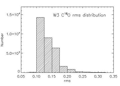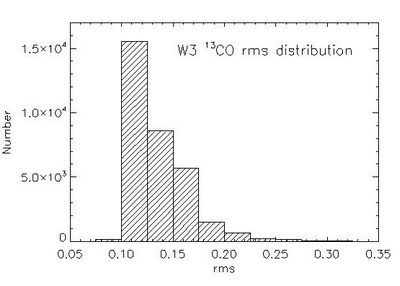 Figure 2. The rms distribution of CO, 13CO and C18O for W3 complex, the velocity resolution is 0.17 km/s. (image or by SUN Yan) |