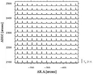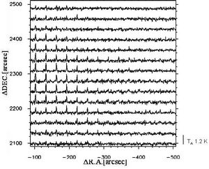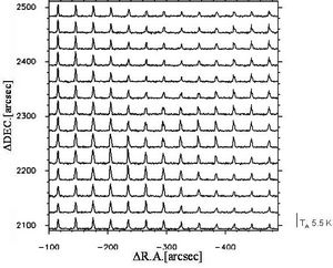 (image or by WU Yuan Wei) Fig.4: Top, middle and bellows are Spectra map for 12CO(1-0)、13CO(1-0) and C18O(1-0).