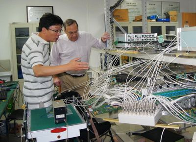 Accompanied by Dr. CHANG Jin, Cherry looked around the key laboratory of Dark Matter and Space Astronomy, PMO, saw the latest development of the Dark Matter Particle Detector.