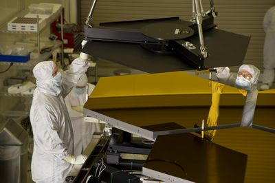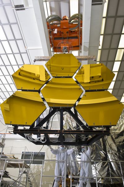Each mirror segment measures approximately 4.3 feet (1.3 meters) in diameter to form the 21.3 foot (6.5 meters), hexagonal telescope mirror assembly critical for infrared observations. Each of the 18 hexagonal-shaped mirror assemblies weighs approximately 88 pounds (40 kilograms). The mirrors are made of a light and strong metal called beryllium, and coated with a microscopically thin coat of gold to enabling the mirror to efficiently collect infrared light.