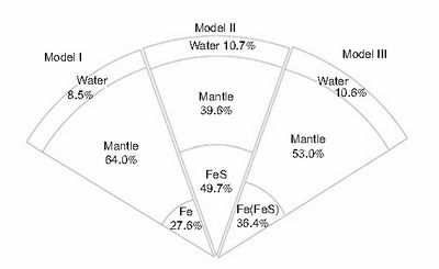They propose three possible internal structure models for Europa using a method by which they set three layers of Europa and the composition of each layer in advance. All models are assumed to be differentiated into a metallic core, a (Mg, Fe)2SiO4 silicate mantle and an outer water shell. The only difference amongst these models are the composition of the core. The core of Model I is composed of Fe, while Model II composed of FeS. Model III has a core which consists of Fe-FeS alloy, similar to that of Earth’s outer core. In Model III, Europa has a 571 km radius, a 832 km (Mg,Fe)2SiO4 mantle and a 166 km water shell with the mass ratio of the core, mantle and water 12, 78 and 10 percent respectively.